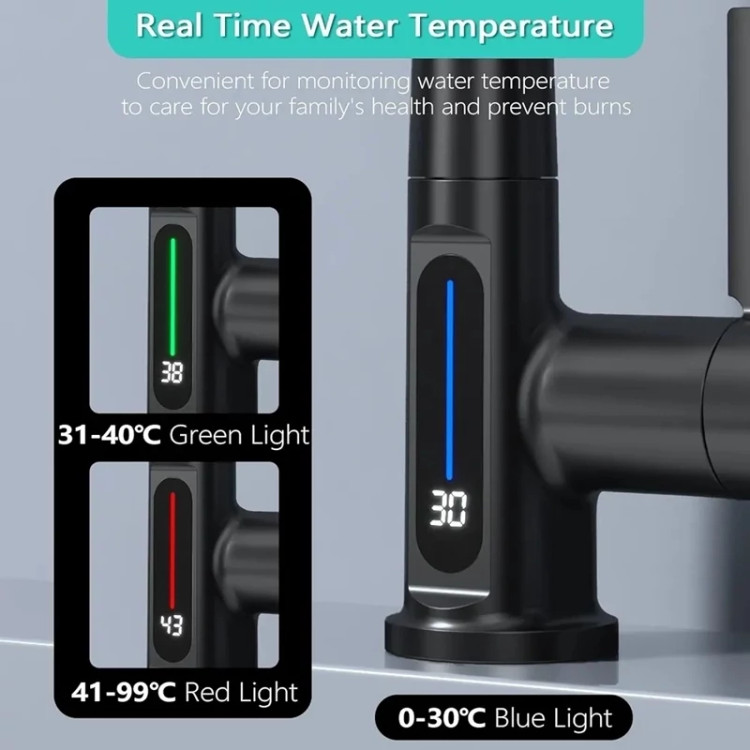شیر ظرفشویی شاوری دیجیتال با نمایشگر دما واقعاً عالیه — دیدن دما قبل از باز کردن آب خیلی کاربردی است.» (تهران)