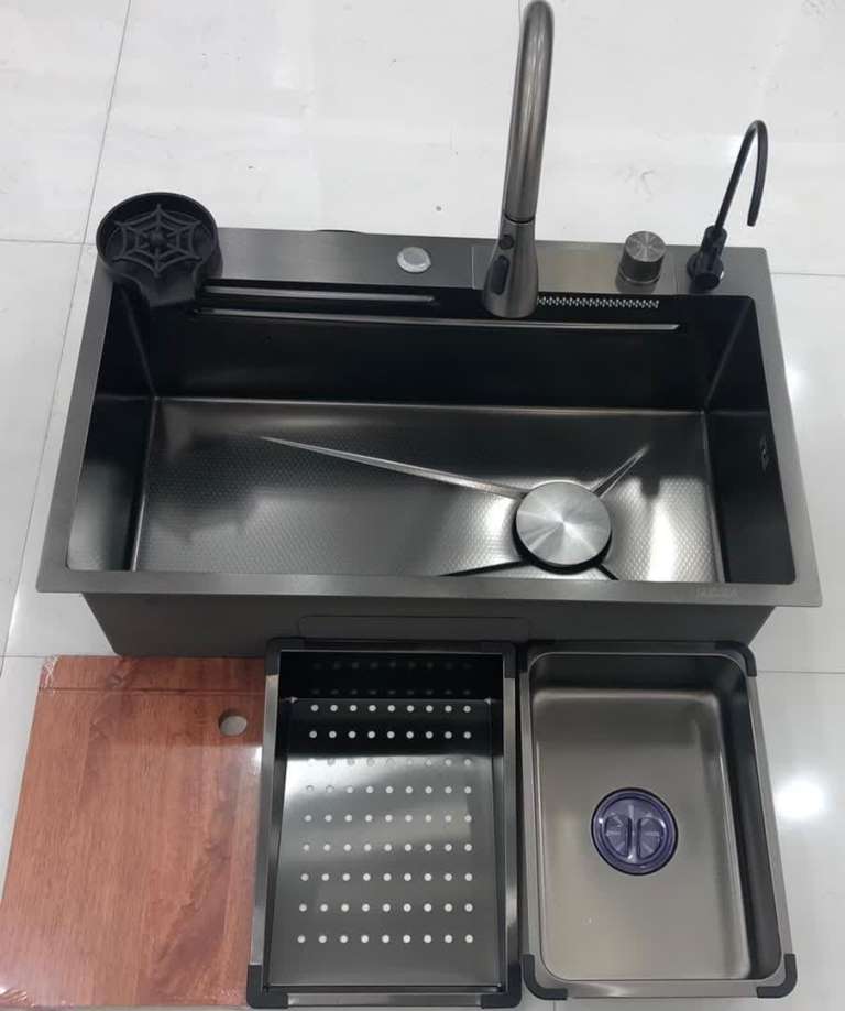 سینک ظرفشویی آبشاری 75 سانت HuaDiao | طراحی لوکس، عملکرد چندحالته، استیل ضدزنگ – WaterFall