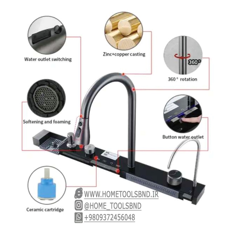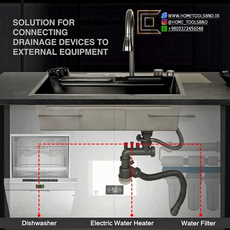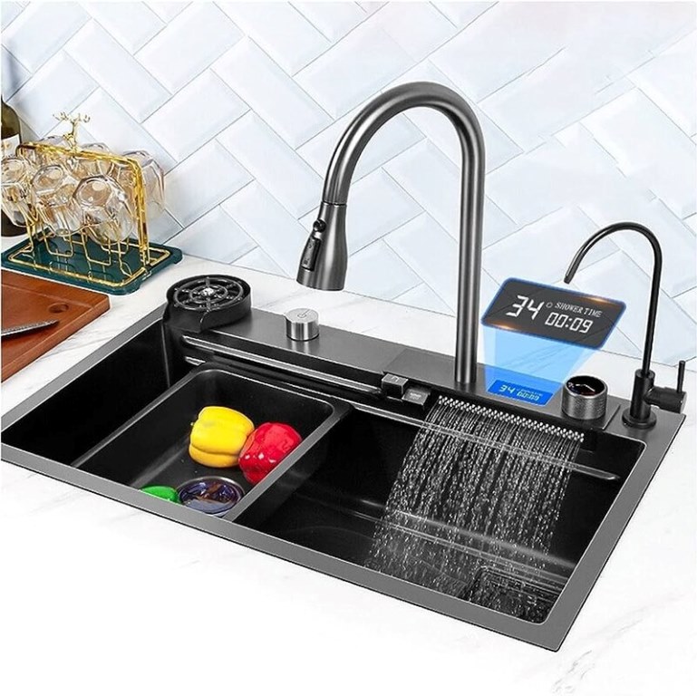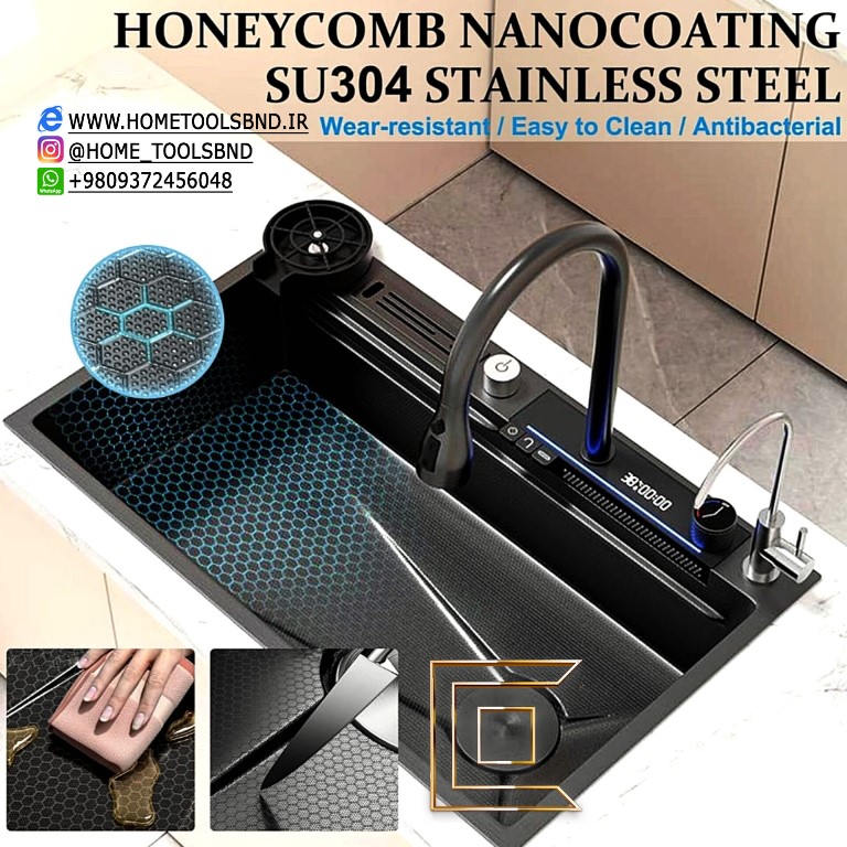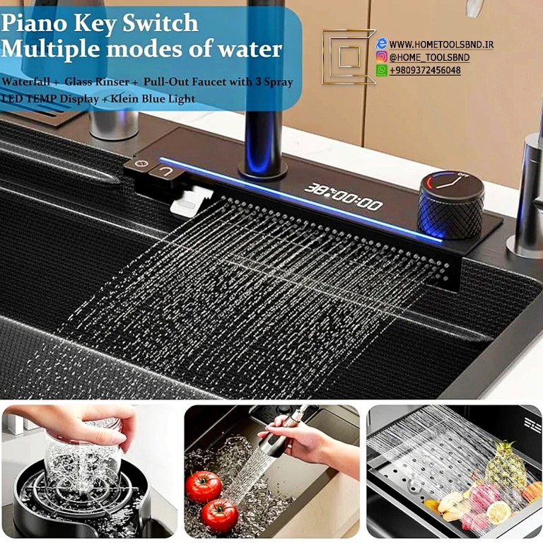 سینک ظرفشویی هوشمند پیانویی ۷ کلید HuaDiao – 75cm با نمایشگر دیجیتال | طراحی لوکس و عملکرد حرفهای – SmartPiano