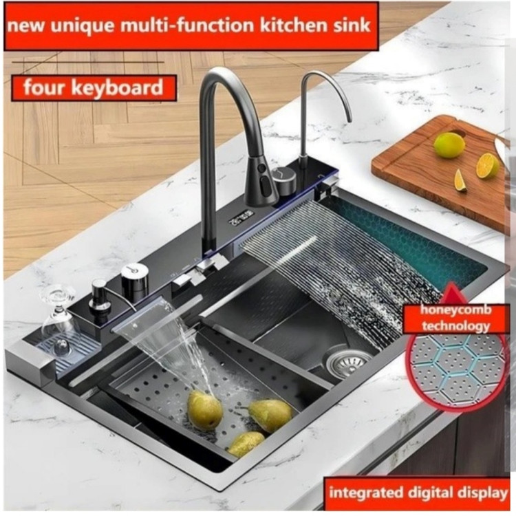 سینک ظرفشویی هوشمند پیانویی ۵ کلید HuaDiao مدل 90cm دودی + نمایشگر دیجیتال؛ آشپزخانهای به سبک Luxury