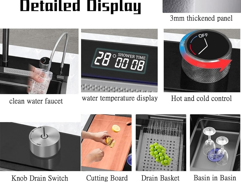جواد از بوشهر: بسته بندی محصول حرفهای بود. تمام متعلقات مثل سبد و تخته گوشت باکیفیت بودن. به نظرم این سینک هوشمند HuaDiao ارزش خرید بالایی داره. ⭐⭐⭐⭐⭐