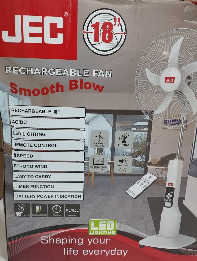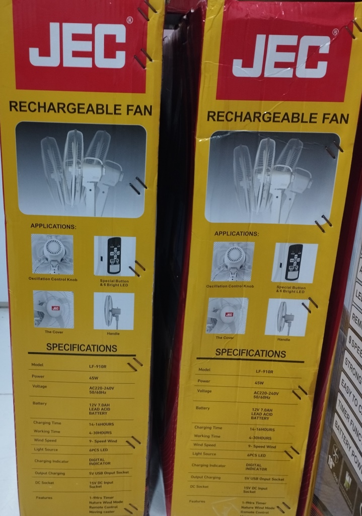 پنکه شارژی ۱۸ اینچ JEC مدل LF-910R | خنککنندگی قدرتمند حتی هنگام قطعی برق ⚡❄️ RechargeFan