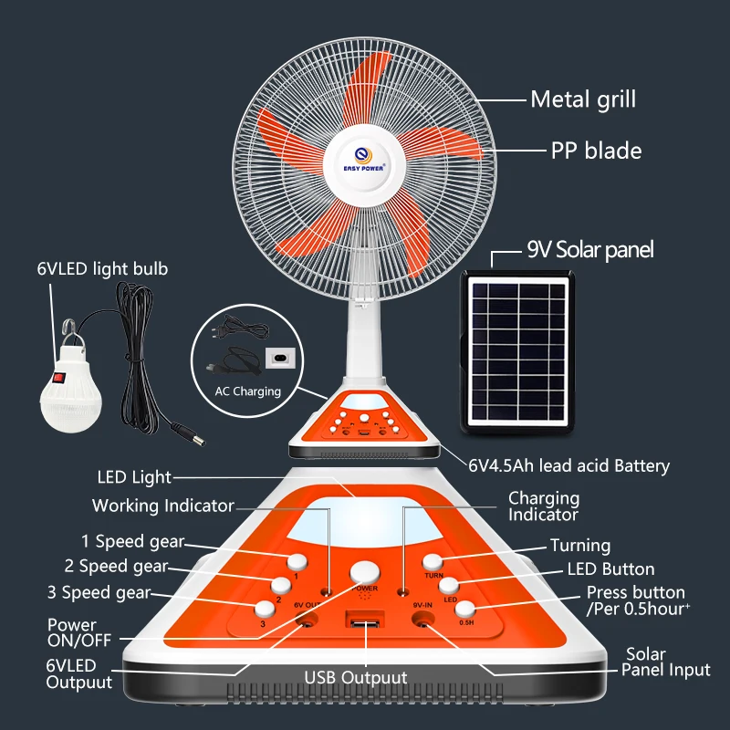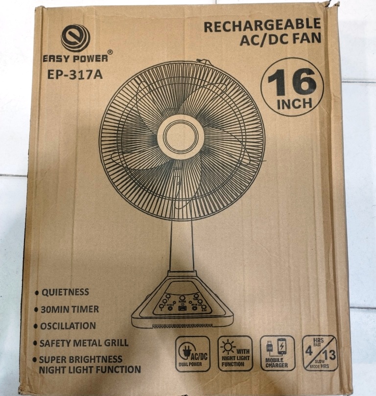 پنکه خورشیدی ۱۶ اینچی EP-317A | خنکی بدون برق + نور LED اضطراری ☀️❄️SolarFan