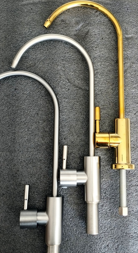 تصویر نزدیک از بدنه استیل ضد زنگ ۳۰۴ شیر آب تصفیه