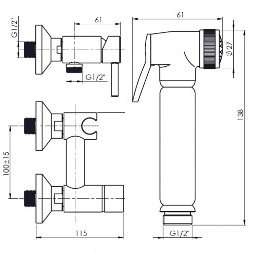 پک سهتایی اقتصادی شیرآلات بهداشتی | روشویی چهارحالته + دوش پیانویی پرفشار + شیر توالت سرد و گرم ضدزنگ